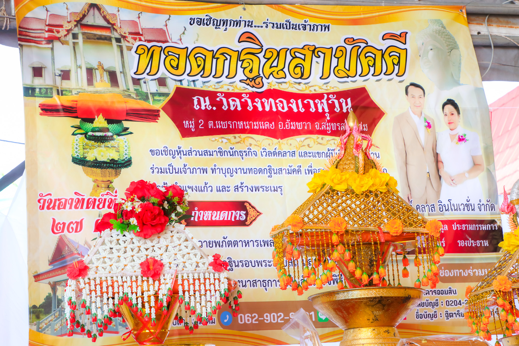ภาพบรรยากาศงานทอดกฐินสามัคคี ประจำปี 2567 เมื่อวันอาทิตย์ที่ 27 ตุลาคม 2567 บริษัท เวิลด์ คลาส อินโนเวชั่น ครั้งนี้เป็นเจ้าภาพ ทอดกฐินสามัคคี โดยมีจุดประสงค์เพื่อสมทบทุน สร้างเมรุและเตาเผาไร้ควัน ณ วัดวังทองเวฬุวัน ตำบลแพรกหนามแดง อำเภอ อัมพวา จังหวัด สมุทรสงคราม